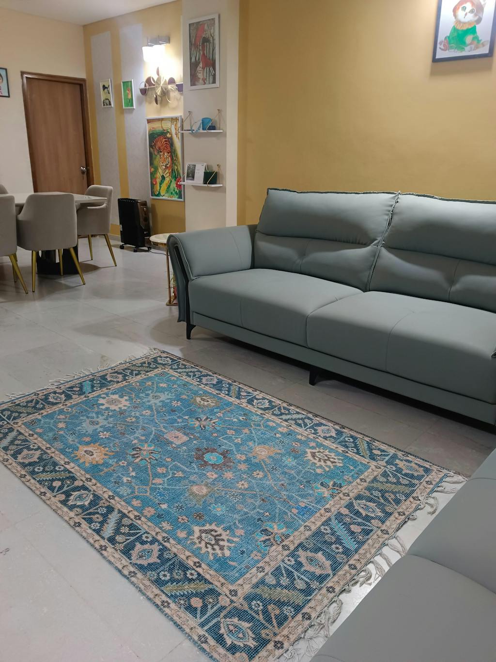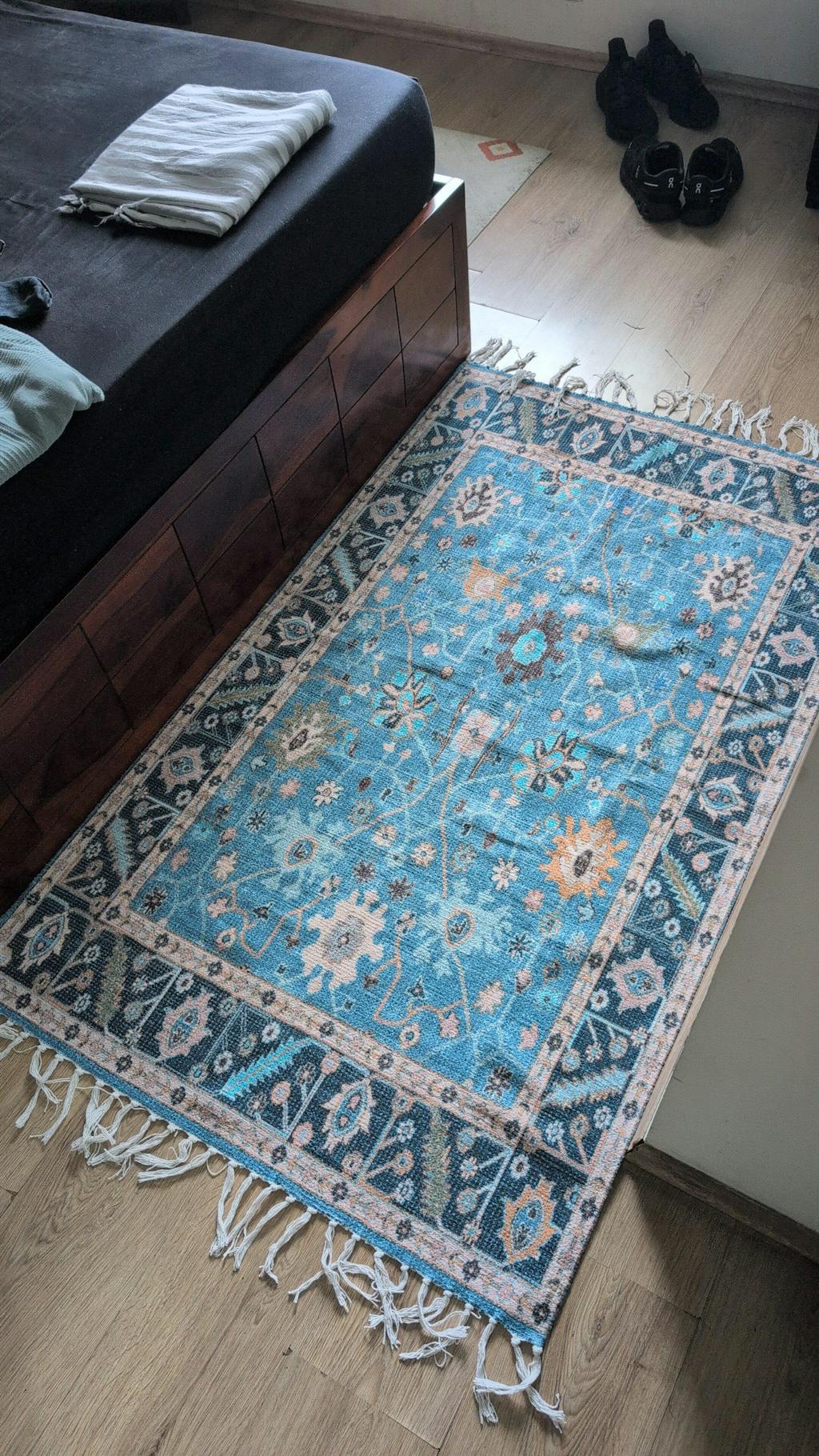 Elevate your space with our Persian-inspired Aqua Garden Area Rug, where timeless luxury meets modern charm.