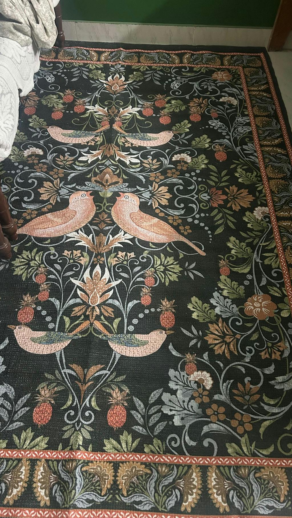 Bring timeless artistry into your home with Rhapsody of Songbirds Area Rug — a tapestry of blooms and birds.